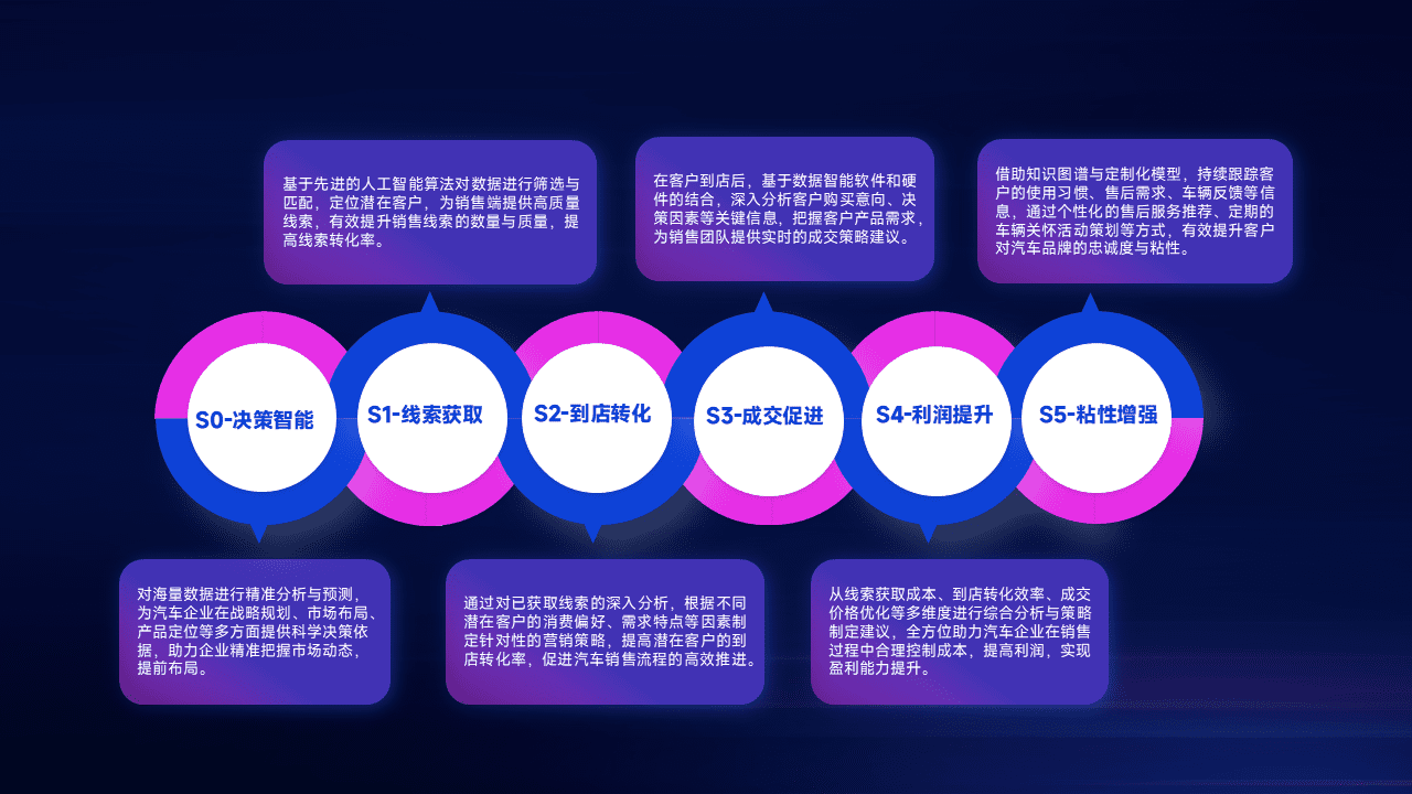 通过拓宽潜在客户来源、、、优化线索分配并提高到店转化率,,,以增强销售效率。。。。同时,,利用线索数据不断优化分析模型,,有效提升转化率,,,扩大营销影响力。。。